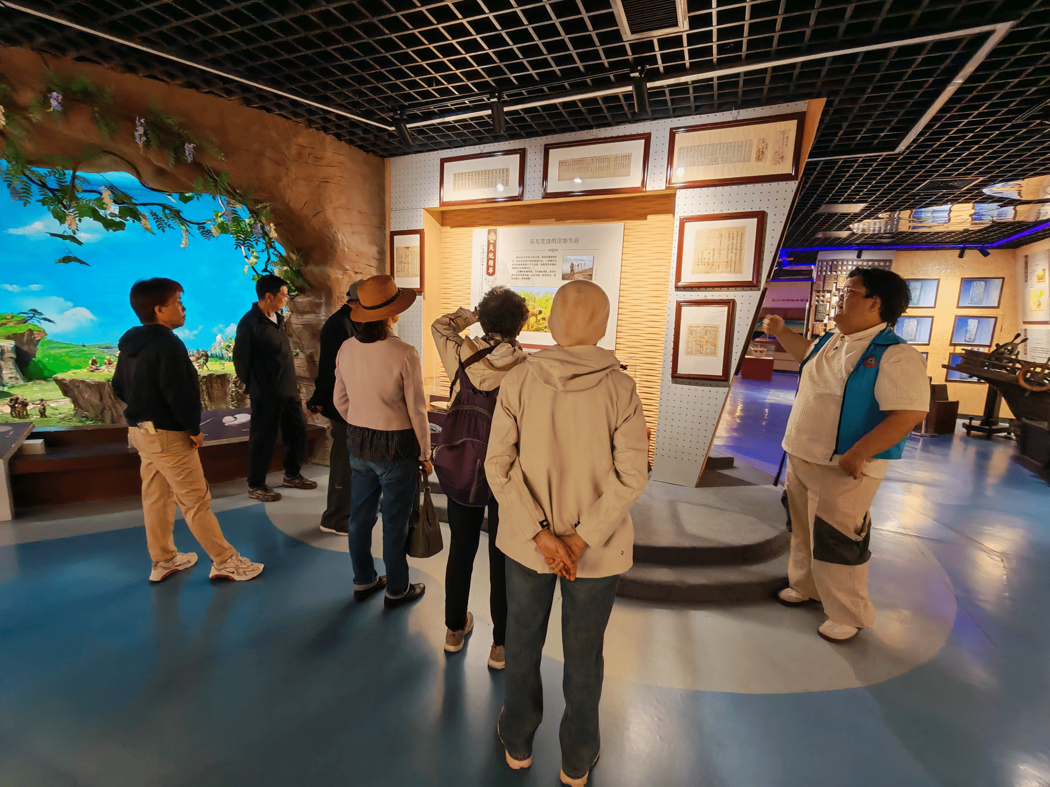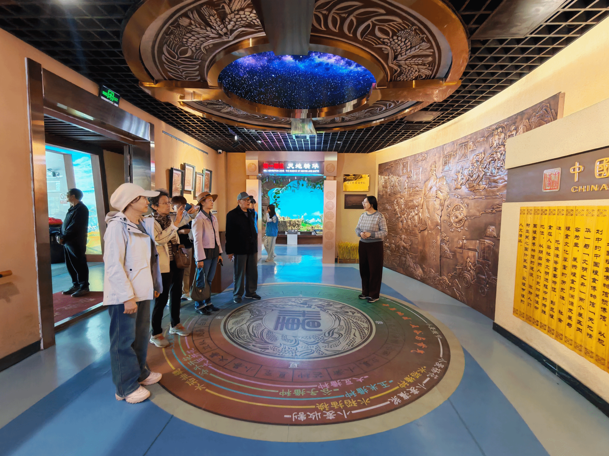 中国粮食博物馆是我校筹资建设的,分为门外与馆内两大展区,门外石磨、石磙、石碾等传统石器错落摆放,可观赏可体验,宛如一幅质朴的农耕石器画卷。步入馆内,在讲解员的引导下,老同志们循着农耕文明的脉络前行,两排黑色酒瓮夹道而立,各类传统农具依次陈列,尽显农耕岁月的厚重与沧桑。